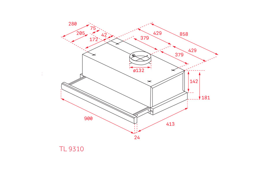 Kích thước của máy hút mùi Teka TL 9310 S/S