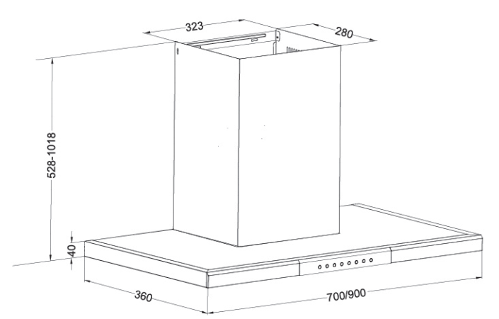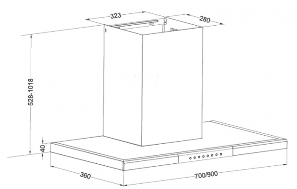 Kích thước sản phẩm: 700/900R x 360S x 528-1018C mm